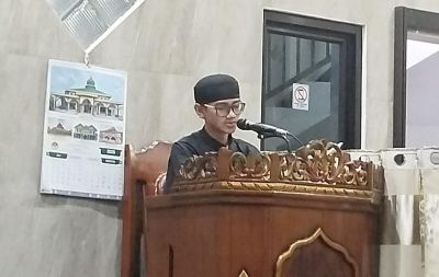 Tamapak kanan Ketua Dewan Masjid Indonesia (DMI) Gambir, M. Fuad Ralibi selaku inspektur upacara HUT RI ke-80 di Halaman Masjid Baitul Manshurin, pada Minggu (17/8/2025).