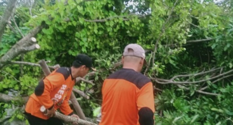 Mendapat Informasi Pohon Tumbang SAR Senkom Langsung Laksanakan Evakuasi