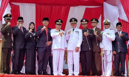 Bertindak sebagai inspektur upacara, Marsma TNI (Pur) H. Sukur, M.Si (Han), yang dalam amanatnya mengingatkan pentingnya mengisi kemerdekaan dengan karya nyata.