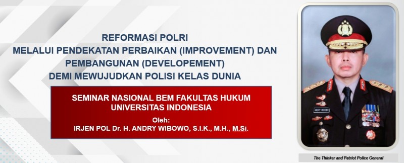 Irjen Pol. Dr. H. Andry Wibowo, S.I.K., M.H., M.Si., Analis Kebijakan Utama Lemdiklat Polri dalam paparannya pada Seminar Nasional BEM FH UI) 2025 bertema “Reformasi Polri: Urai Problematika Sekarang, Reformasi Polri Segera