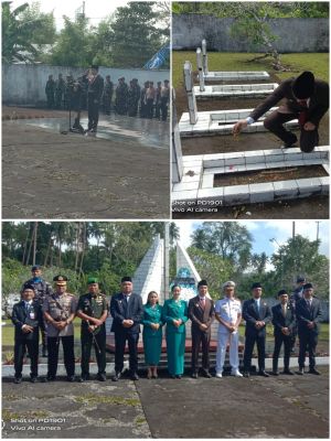 Secara simbolis, Presiden Prabowo kemudian memulai penimbunan liang lahad. Prosesi upacara dilanjutkan dengan peletakan karangan bunga oleh Presiden dan pihak keluarga.