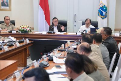 Gubernur DKI Jakarta Pramono Anung saat membuka FGD)bertajuk Transforming Jakarta’s Markets: Leveraging Markets as Urban Catalysts for Inclusive and Sustainable City Development di Ruang Pola, Balai Kota DKI Jakarta, Senin (23/2/2026).